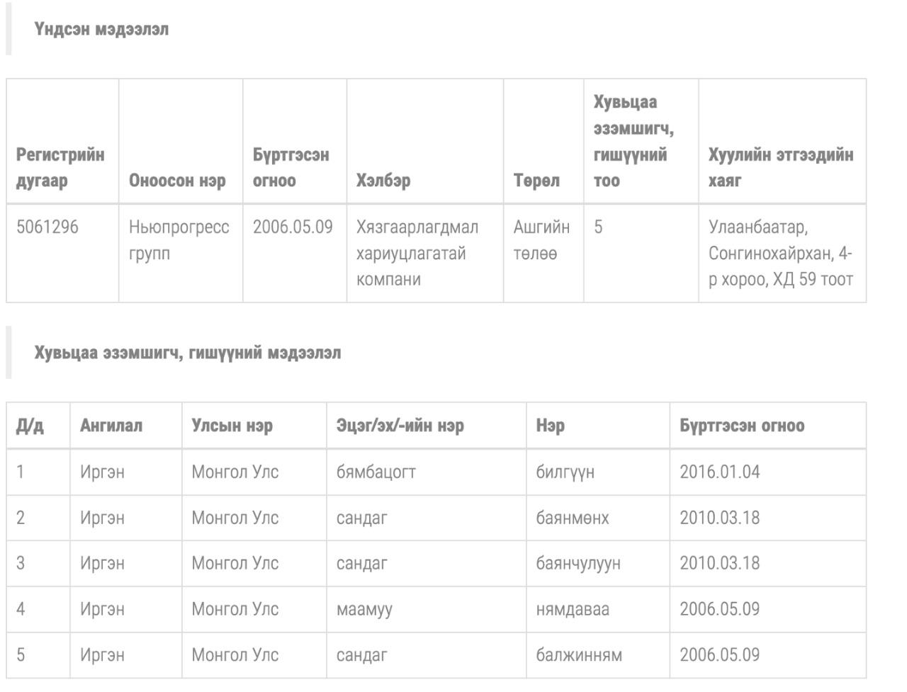 Харин Нью Прогресс групп ХХК-ийн хувьцаа эзэмшигч нь С.Бямбацогтын том хүү Б.Билгүүн юм.